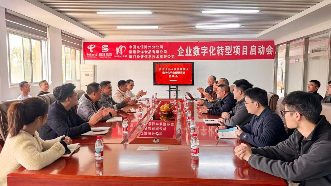 2026年2月6日,舜洋食品數(shù)字化轉(zhuǎn)型項(xiàng)目啟動會在舜洋總部(漳浦)召開。舜洋食品總經(jīng)理林炳義及公司領(lǐng)導(dǎo)層、漳浦電信分公司副總經(jīng)理唐藝鎮(zhèn)、快普董事長溫祝平,及三方項(xiàng)目組共同參與此次會議。